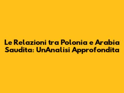 Le Relazioni tra Polonia e Arabia Saudita: Un'Analisi Approfondita